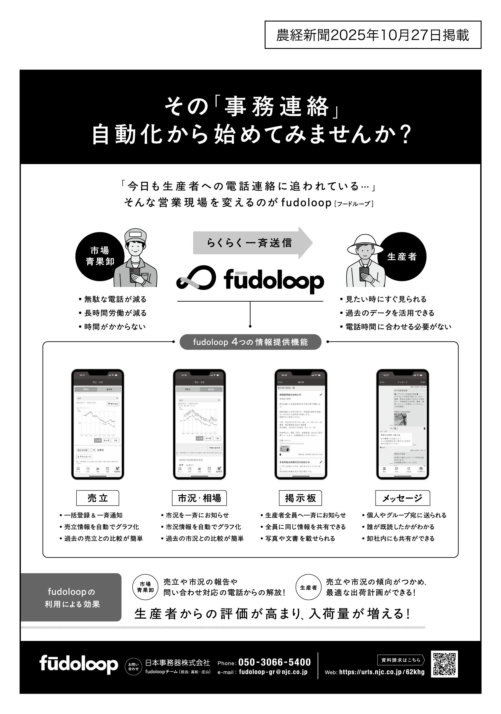 2025年10月27日(月)「農経新聞」にて、「fudoloop」の広告が掲載されました。